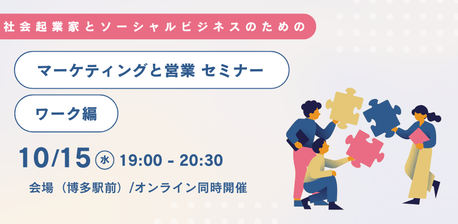 テーマは『社会起業家とソーシャルビジネスのためのマーケティングと営業セミナー ワーク編』となり、NGCパートナーズ 代表石井さまと共同で登壇します。