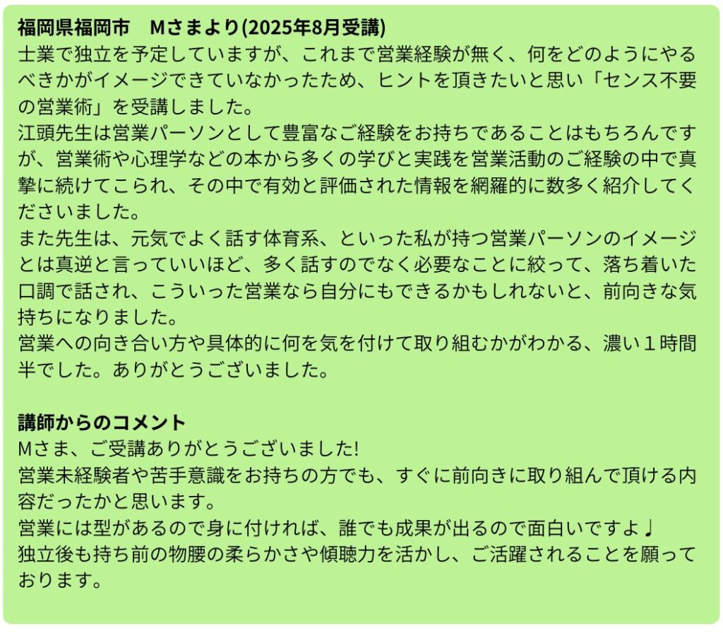 受講後感想をお寄せ頂いたMさま本当にありがとうございます!